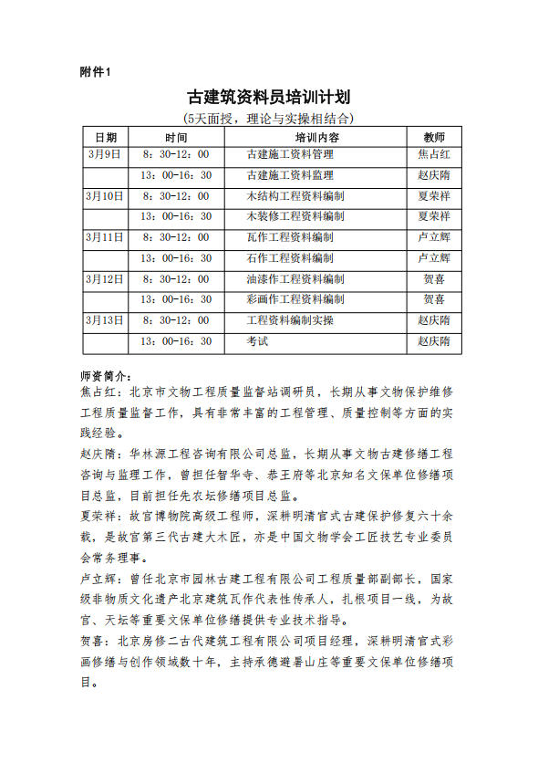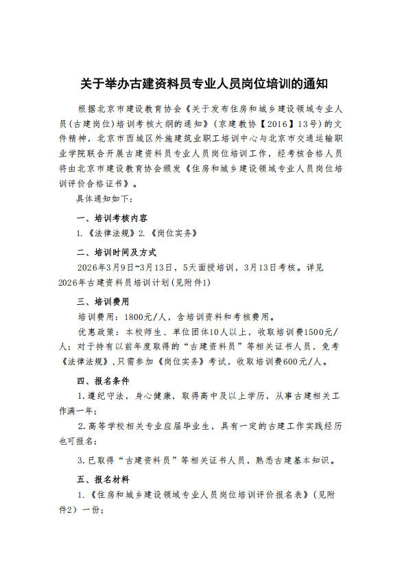 关于举办古建资料员专业人员岗位培训的通知