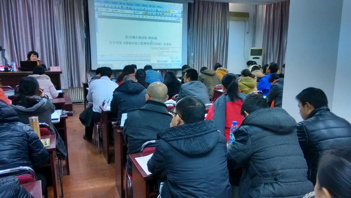 此次培训特邀请原北京市建设工程造价管理处安装市政室刘维主任就近两年住建部及市住建委相关文件进行详细解读,包括住房城乡建设部、财政部《关于印发<建筑安装工程费用项目组成>》(建标(2013)44号)、《关于执行2012年<北京市建设工程计价依据——预算定额>的规定》(京建法〔2013〕7号)等文件。